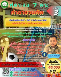 ฟุตบอล 7 คน คำอาฮวนคัพ ครั้งที่ 3 (รับสมัครวันนี้ – 25 มีนาคม 2568)