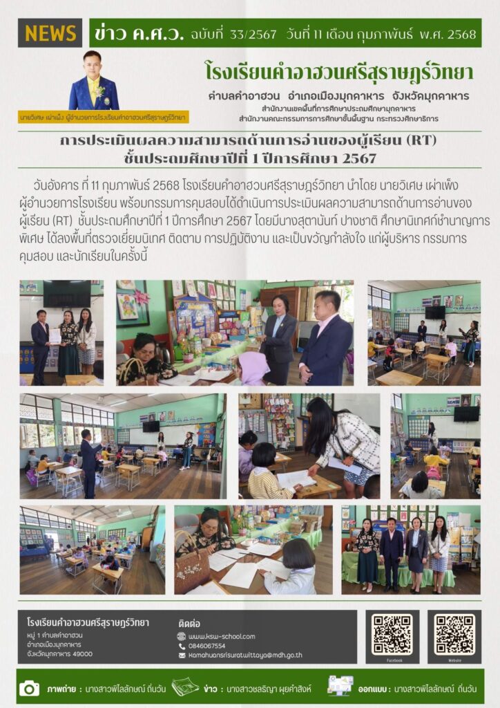 การประเมินผลความสามารถด้านการอ่านของผู้เรียน (RT) ชั้นประถมศึกษาปีที่ 1 ปีการศึกษา 2567