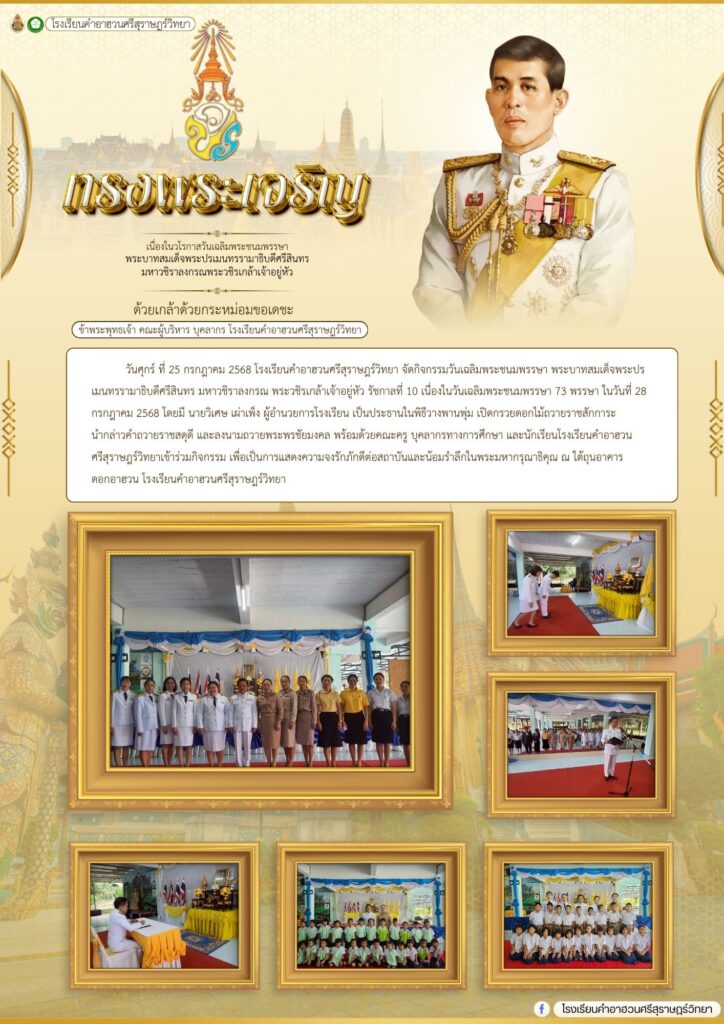 วารสารโรงเรียนฉบับที่ 20 : กิจกรรมวันเฉลิมพระชนมพรรษา พระบาทสมเด็จพระปรเมนทรรามาธิบดีศรีสินทร มหาวชิราลงกรณ พระวชิรเกล้าเจ้าอยู่หัว รัชกาลที่ 10 Posted on 25/07/202515/08/2025 by pilailuk94 25 ก.ค. Post Views: 0 pilailuk94 ส่งความห่วงใยและกำลังใจ ฉบับที่ 21 : การประชุมปฏิบัติการ การผลิตสื่อการเรียนการสอน ตามโครงการ “การพัฒนาทักษะ ฟัง พูด อ่าน เขียนภาษาไทยของนักเรียนบนฐานความมั่นคงทางอาหารตามหลักปรัชญาของเศรษฐกิจพอเพียง”