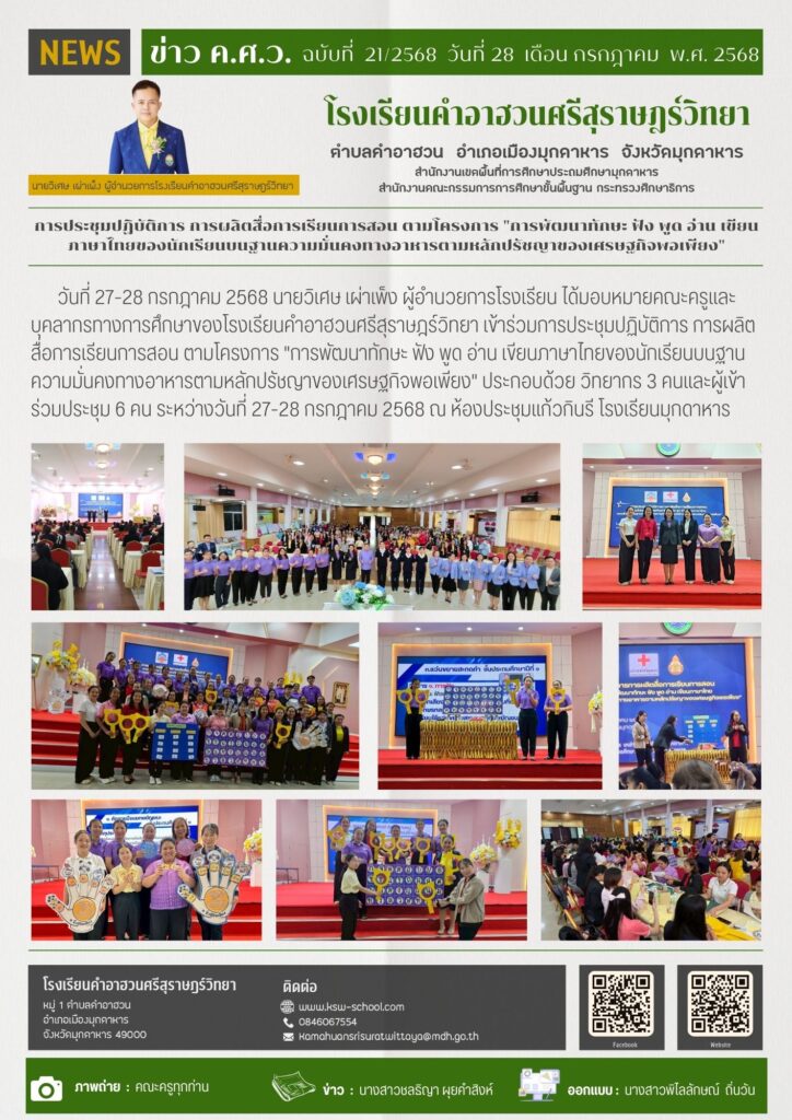 วารสารโรงเรียนฉบับที่ 21 : การประชุมปฏิบัติการ การผลิตสื่อการเรียนการสอน ตามโครงการ “การพัฒนาทักษะ ฟัง พูด อ่าน เขียนภาษาไทยของนักเรียนบนฐานความมั่นคงทางอาหารตามหลักปรัชญาของเศรษฐกิจพอเพียง” Posted on 28/07/202515/08/2025 by pilailuk94 28 ก.ค. Post Views: 0 pilailuk94 ฉบับที่ 20 : กิจกรรมวันเฉลิมพระชนมพรรษา พระบาทสมเด็จพระปรเมนทรรามาธิบดีศรีสินทร มหาวชิราลงกรณ พระวชิรเกล้าเจ้าอยู่หัว รัชกาลที่ 10 ฉบับที่ 22 : ขอบคุณผู้ใหญ่ใจดี
