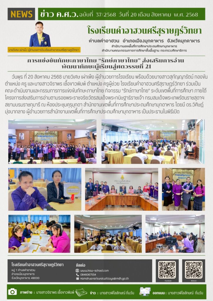ฉบับที่ 37 : การแข่งขันทักษะภาษาไทย “รักษ์ภาษาไทย” ส่งเสริมการอ่านพัฒนาทักษะผู้เรียนสู่ศตวรรษที่ 21
