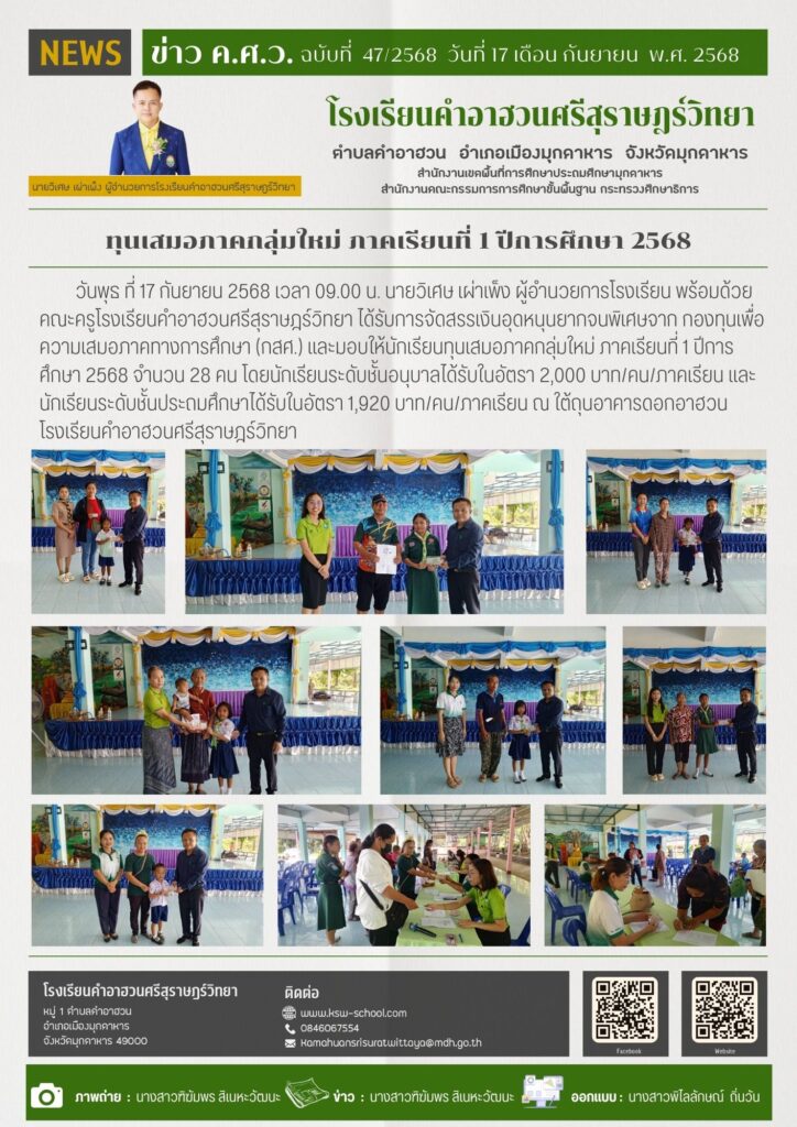 ฉบับที่ 47 : ทุนเสมอภาคกลุ่มใหม่ ภาคเรียนที่ 1 ปีการศึกษา 2568