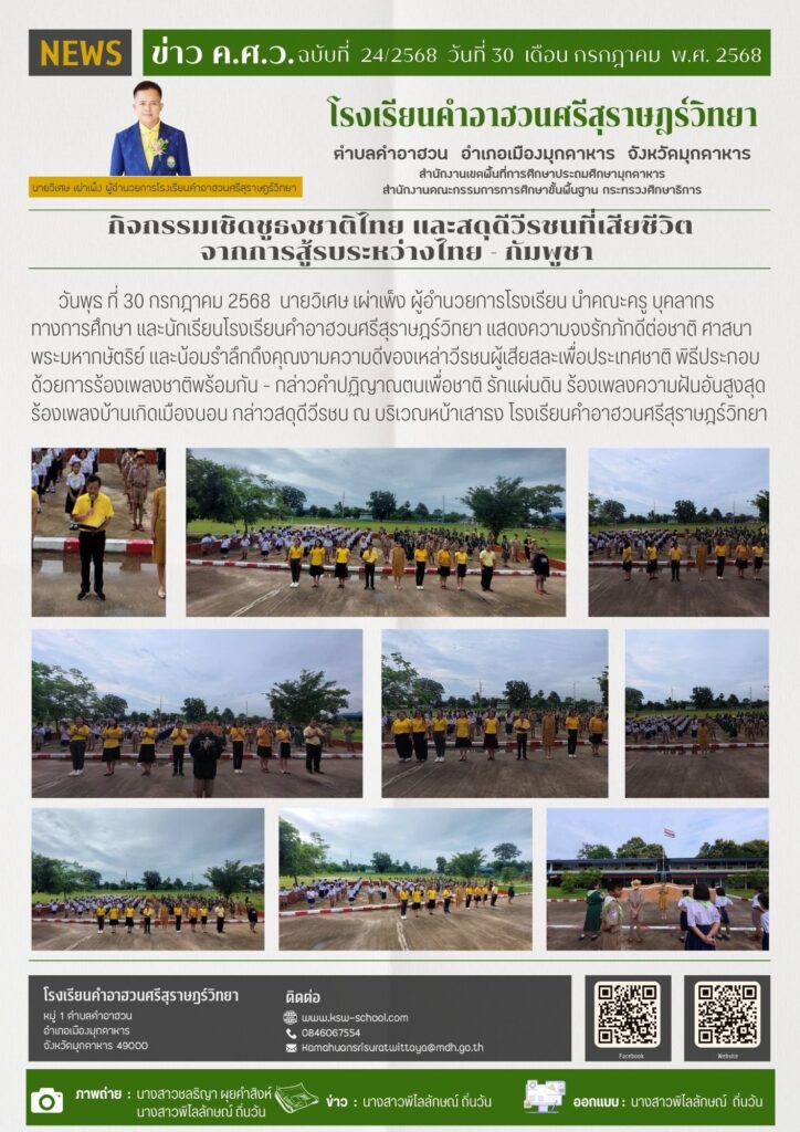 วารสารโรงเรียนฉบับที่ 24 : กิจกรรมเชิดชูธงชาติไทย และสดุดีวีรชนที่เสียชีวิตจากการสู้รบระหว่างไทย – กัมพูชา Posted on 30/07/202515/08/2025 by pilailuk94 30 ก.ค. Continue reading →